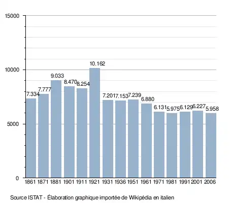 - ↑ (it) Popolazione residente e bilancio demografico sur le site de l'ISTAT.