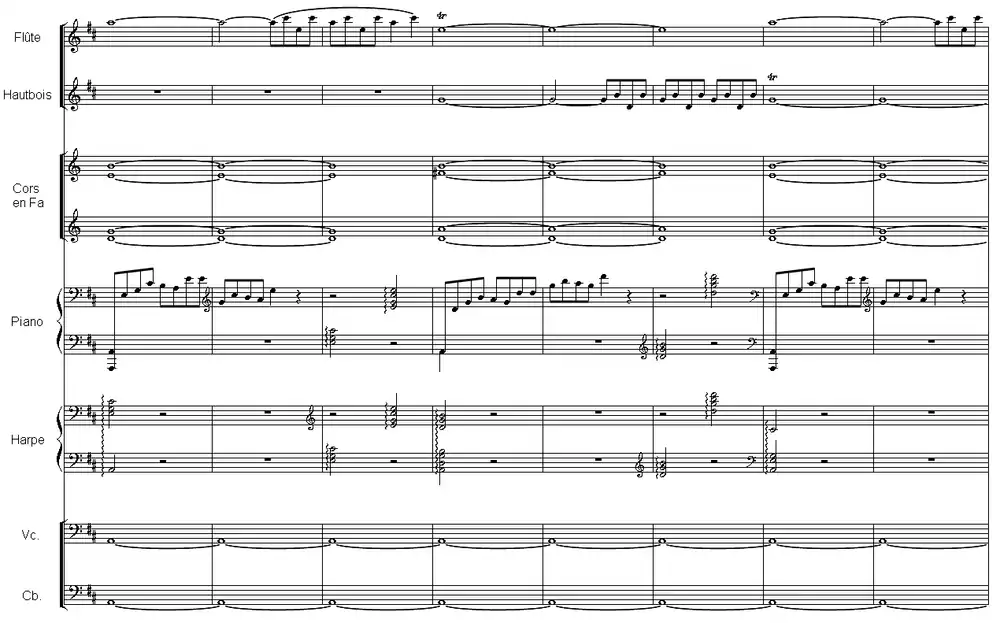 - Aucassin et Nicolette de Paul Le Flem, dont l'orchestre se limite aux cordes, harpe, piano et orgue,