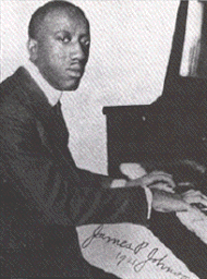 - James P. Johnson est le premier pianiste stride important de Harlem. Ses accompagnements de blues pour Bessie Smith étaient inégalables[8]. Le morceau Carolina Shout est un morceau de référence pour tous les pianistes de swing afin de tester leurs capacités, son charleston était un succès.