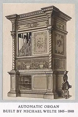 L'une des plus grandes firmes dans ce domaine était la compagnie américano-allemande M. Welte & Sons, fabricante du piano reproducteur Welte-Mignon, et la Wurlitzer-Company, fondée par deux immigrants allemands de Bavière, Welte et Bockisch. Ces énormes machines furent les instruments les plus complexes jamais construits, à l'exception de quelques orgues.