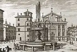 La place carrée a également eu plusieurs autres noms, tous liés à des cardinaux qui étaient locataires ou propriétaires des palais qui l'entouraient (et spécialement le palais Della Rovere)[6] : elle a été nommée Piazza di San Clemente (Domenico della Rovere fut prêtre cardinal de Saint-Clément du-Latran) ; Piazza di Trento (diocèse du cardinal Carlo Gaudenzio Madruzzo, qui acquit en 1609 le palais pour 26 000 écus)[8] ; Piazza d'Aragona (du cardinal Louis d'Aragon, petit-fils naturel du roi Ferdinand Ier de Naples et père de la courtisane et poétesse Tullia d'Aragon, qui vécut dans le palais à partir de 1514)[9],[10] ; Piazza Salviati (du cardinal Giovanni Salviati, neveu du pape Léon X, locataire du palais à partir de 1524)[9],[1],[11].