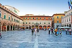 Son aménagement est décidé, en 1507, par le gouverneur Raniero de Ranieri qui imposa la construction de portiques à colonnes pour remplacer l'installation précaire de beaucoup de boutiques qui entouraient la place.
