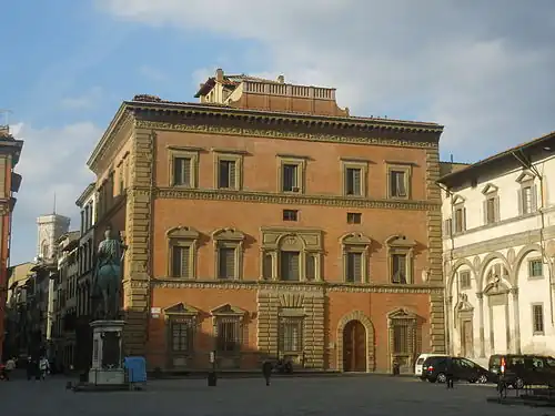 - Le Palazzo Grifoni, aujourd'hui Palazzo Budini-Gattai (it). Bâti sur des terrains herbeux appartenant à l'ordre, à la suite d'une décision du prieur général accordant leur permission aux citadins[1], œuvre de Bartolomeo Ammannati dont les travaux durèrent de 1557 à 1563. Devenu palazzo Riccardi-Manelli, il est aujourd'hui le palazzo Budini-Gattai.
