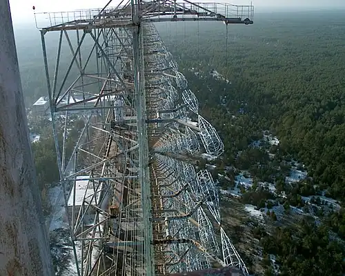 - ↑ (en) « Radar "Duga-3” doesn’t exist! » CHORNOBYL TOUR 2018 - trips to the Chornobyl exclusion zone, to the Pripyat town, ChNPP. (ex. CHERNOBYL TOUR) », sur chernobyl-tour.com (consulté le ).