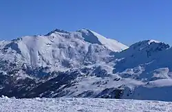 La face sud du pic de Saint-Barthélemy (à gauche du centre). | |