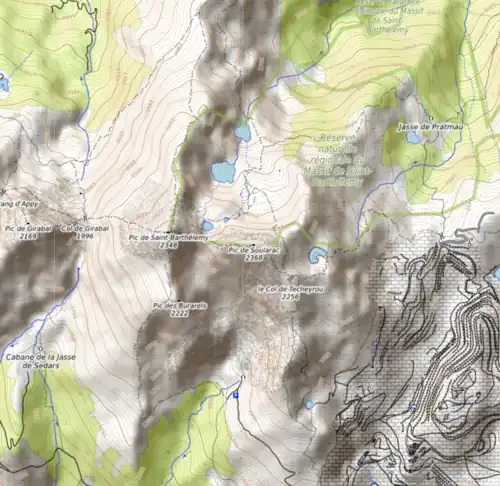 - enfin, le pic de Soularac étant toujours resté « dans l'ombre » du pic de Saint-Barthélemy (bien que plus élevé que ce dernier), il est bien souvent ignoré purement et simplement. Par exemple, aucune carte ne particularise et ne nomme ce sommet avant la carte du ministère de la Guerre (future carte d'état-major) levée puis éditée dans la première moitié du XIXe siècle.
