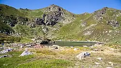 Le pic de Soularac et son versant nord occupé par l'étang Supérieur. | |