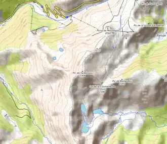 Administrativement, le sommet se trouve à la limite des territoires communaux d'Ascou (versant ouest) et de Mijanès (versant est)[1].