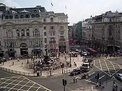 - ↑ Ou plus précisément les rues The Quadrant au nord de Piccadilly Circus et Lower Regent Street au sud, toutes deux étant des prolongements de Regent Street.