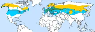 - L. e. excubitor Linné, 1758 — Europe et nord-ouest de la Sibérie