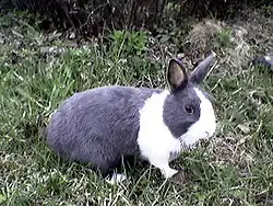Chez le lapin domestique, la robe bicolore se distingue par deux patrons différents appelés « panaché plaqué » et « panaché tacheté ». Le panaché plaqué est une robe analogue à celle du chat bicolore : les plages blanches s'étendent préférentiellement sur la tête, les pattes et le tronc. La race hollandaise illustre ce type de robe. Le panaché tacheté est l'apparition de motifs de couleur (pastille, papillon) sur une robe blanche, typique de la race papillon anglais[11].