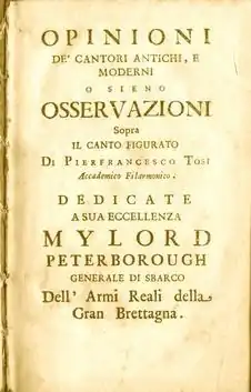 Pier Francesco Tosi (né en 1654 à Cesena – mort en 1732 à Faenza) est un castrat et compositeur italien de la fin du XVIIe et du début du XVIIIe siècle.