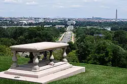 À l'instigation de l'ambassadeur de France aux États-Unis Jean Jules Jusserand, la nation adoptive de L'Enfant reconnaît alors ses contributions. En 1909, ses restes sont exhumés de leur lieu de sépulture à Green Hill et placés dans un cercueil doublé de métal. Après avoir été exposé dans la rotonde du Capitole[60], il est inhumé devant Arlington House, sur une pente du cimetière national d'Arlington en Virginie[61]. Son lieu d'inhumation surplombe le fleuve Potomac et la partie de Washington, DC, qu'il a initialement conçue. En 1911, un monument est placé sur sa tombe lors d'une cérémonie d'inauguration au cours de laquelle le président William Howard Taft, Jean Jules Jusserand et le sénateur Elihu Root prennent la parole. Sur le monument est gravée une partie du plan de L'Enfant sous forme de diagramme, que la révision d'Andrew Ellicott et le plan de la Commission McMillan ont modifié. Pierre Charles L'Enfant est la première personnalité ne faisant pas partie du gouvernement à recevoir un tel hommage. Il faudra attendre près d'un siècle pour voir une seconde personne recevoir ce privilège lors des funérailles de Rosa Parks, la militante pour les droits civiques, en 2005.