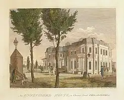Peu de temps après avoir quitté la région de la capitale nationale, Pierre Charles L'Enfant conçoit les plans initiaux de la ville de Paterson, dans le nord-est du New Jersey, le long de la rivière Passaic, mais est renvoyé de ce projet après un an[48]. Cependant, en 1846, la ville reprend son projet original lorsque le système de canalisation de la ville rencontre des problèmes. Au cours de la même période (1792-1793), il conçoit le manoir de Robert Morris à Philadelphie, qui n'est jamais terminé en raison de ses retards et de la faillite de Morris[49]. En 1794, il est chargé de reconstruire le Fort Mifflin sur l'île Mud, dans le fleuve Delaware, en aval de Philadelphie[50],[51].