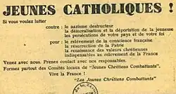 Entre-temps, il est très choqué[8] en , par le décret allemand qui impose en zone occupée le port de l'étoile jaune. Il commence avec ses camarades catholiques à cacher des juifs dans les couvents pour les faire passer en zone sud, puis des aviateurs et des prisonniers échappés. De 1943 à 1944, il est membre du Comité directeur de la Fédération française des étudiants catholiques dont il dirige le bulletin Étudiant-Étudiantes publié en zone sud, grâce à la bienveillance du directeur du Service de la censure de Vichy, l'anticonformiste René Vincent. Ce journal, diffusé en zone sud, est remonté clandestinement en zone occupée par des membres de la Jeunesse agricole chrétienne. Sous le pseudonyme de Debray, il peut y faire paraître l'éloge de Malraux et Aragon. Cette entrée en journalisme lui vaut une perquisition de la Gestapo. Il passe à la résistance en participant à la création des jeunes chrétiens combattants et prend les armes.
