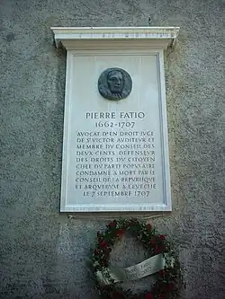 Fatio se fait alors le porte-parole et le défenseur de la bourgeoisie en lutte contre le patriciat qui le considère dorénavant comme un transfuge. Lors des troubles de 1707, il propose plusieurs réformes, notamment celle de la réunion annuelle d'un Conseil général délibérant. Il est cependant lâché par la frange influente de son parti qui juge ses positions trop extrémistes. Prétextant sa participation à un projet de complot visant à renverser le gouvernement, le Petit Conseil condamne Fatio à mort. Il est fusillé dans la cour de la prison de l'Evêché.