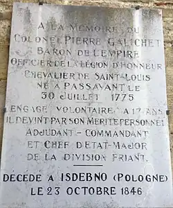 - ↑ Informations plus précises sur http://chan.archivesnationales.culture.gouv.fr/ BB/29/968 page 129. Titre de baron, accordé par décret du 15 août 1809, à Pierre Galichet. Paris (16 décembre 1810).