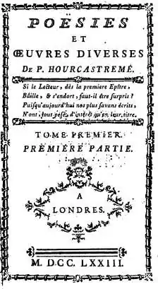 - Poésies et œuvres diverses. Londres : 1773.