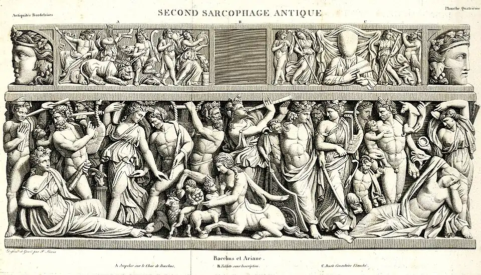 - ↑ P. Bernadau, « Description de trois bas-reliefs antiques », Bulletin polymathique du Muséum, , p. 284-290 (lire en ligne, consulté le ).