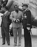 Pierre Paquier accueille les aviateurs américains du "Pingpong flight"