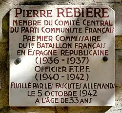 - ↑ Notice « REBIÈRE Pierre », Le Maitron en ligne.