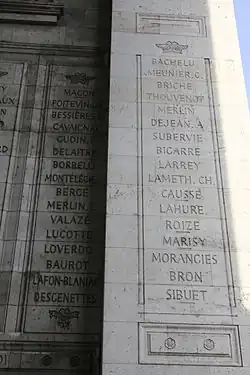 | Hommages | Nom gravé sous l'arc de triomphe de l'Étoile, 30e colonne | |