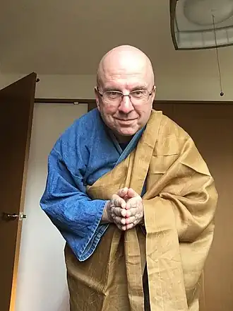En 2002, il reçoit la transmission du dharma (shihō) de Mike Chōdō Cross[10], héritier de Gudō Wafu Nishijima (1919-2014), qui lui-même l'avait reçue de Niwa Zenji (1905-1993), abbé du temple d'Eihei-ji. (Gudō Nishijima et Chōdō Cross sont les auteurs d'une traduction de référence[12] en anglais du Shōbōgenzō, l'œuvre maîtresse de Dōgen.)