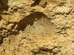 Cette pierre à faluns est présente dans le sous-sol du département français des Landes et du Caucase. Des coquillages fossilisés des mers tertiaires y sont incrustés, de même que des dents de requins ou des vestiges d'animaux disparus. Elle présente la particularité d'être friable et très résistante aux attaques du temps, en gardant une belle teinte dorée. De ce fait, elle reste très appréciée des carriers pendant des siècles.