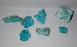 La pierre d'Eilat est une association de plusieurs minéraux de cuivre : malachite, chrysocolle, turquoise, azurite, pseudo-malachite, etc.