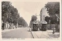 La mairie en 2013, avec le tramway, qui dessert la commune depuis l'été 2013. | |||||
