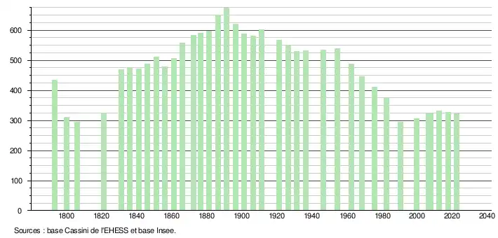 - ↑ Fiches Insee - Populations de référence de la commune pour les années 2006, 2007, 2008, 2009, 2010, 2011, 2012, 2013, 2014, 2015, 2016, 2017, 2018, 2019, 2020, 2021 et 2022.