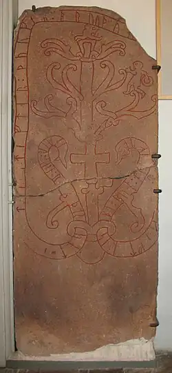 La pierre runique comporte une croix chrétienne stylisée, comme l'ont un certain nombre de pierres de Sigurd. Les pierres runiques de Sigurd avec des croix sont considérées comme une preuve de l'acceptation et l'utilisation des légendes de la Volsung Saga par le christianisme au cours de la période de transition depuis le paganisme nordique[1]. D'autres pierres de Sigurd avec des croix dans leur conception comprennent U 1175, Sö 327, Gs 2, and Gs 9[1].