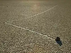 Les pierres mouvantes, qui pourraient également être nommées pierres à voile, pierres glissantes, pierres marchantes, sont un phénomène géologique où des roches se déplacent et inscrivent de longues traces dans le fond d’une vallée lisse ceci sans intervention humaine ou animale. Le mouvement des roches se produit lorsque de larges plaques de glace de quelques millimètres d'épaisseur, flottant l’hiver dans un lac éphémère, commencent à se briser par beau temps. Gelés durant les froides nuits d’hiver, ces minces panneaux de glace flottants sont entraînés par le vent et poussent les rochers à une vitesse pouvant atteindre 5 mètres par minute. De telles traces de roches glissantes ont été observées et étudiées à divers endroits, notamment à la petite Bonnie Claire Playa dans le Nevada et, plus particulièrement, à Racetrack Playa (plage de l’hippodrome), dans le parc national de la vallée de la Mort, en Californie, où le nombre et la longueur des traces sont remarquables.