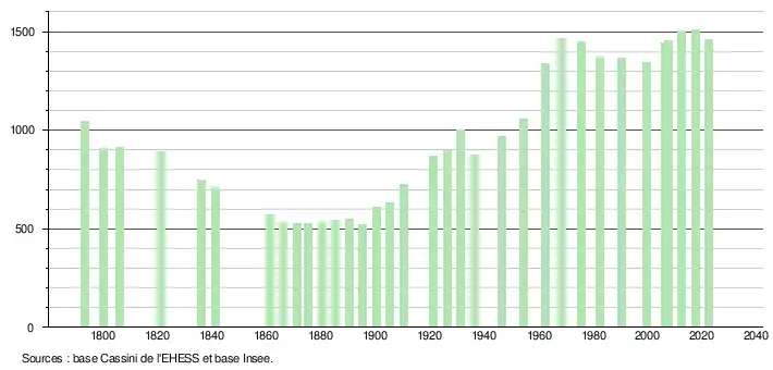 - ↑ Fiches Insee - Populations de référence de la commune pour les années 2006, 2007, 2008, 2009, 2010, 2011, 2012, 2013, 2014, 2015, 2016, 2017, 2018, 2019, 2020, 2021 et 2022.