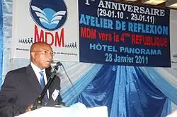 - ↑ La plate-forme politique dénommée Mouvement pour la Démocratie à Madagascar (MDM).
