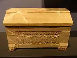 - Marie-Françoise Briguet, « La sculpture en pierre fétide de Chiusi au musée du Louvre (II) », Mélanges de philosophie, de littérature et d'histoire ancienne offerts à Pierre Boyancé, Publications de l'École française de Rome, vol. 22, , p. 103-139 (lire en ligne, consulté le ).
