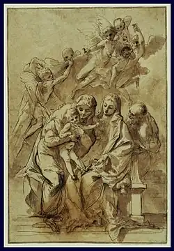 - Le couronnement du peintre sur le Parnasse, plume et encre brune, 17 × 24 cm, Paris, Beaux-Arts de Paris[5].