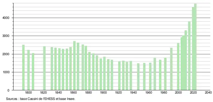 - ↑ Fiches Insee - Populations de référence de la commune pour les années 2006, 2007, 2008, 2009, 2010, 2011, 2012, 2013, 2014, 2015, 2016, 2017, 2018, 2019, 2020, 2021 et 2022.