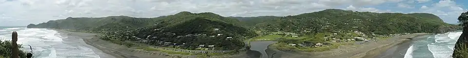 Le secteur a gardé l’essentiel de sa beauté naturelle et son caractère isolé. Tout comme les deux spots de surf, situés à proximité, il y a aussi un lagon abrité et plusieurs ruisseaux. La ligne de côte sauvage est couverte de forêt provenant du prolongement de la chaîne de Waitakere, qui offrent de nombreuses possibilités de promenades, allant de facile à très difficile.
