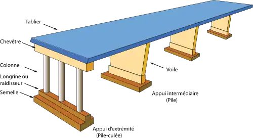 La pile d'un pont est un appui intermédiaire supportant le tablier de l’ouvrage. Il s’agit d’un appui massif et permanent, par opposition aux palées qui sont des appuis plus légers et temporaires[1].