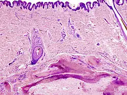 - ↑ (en) Nada El Moussaoui et Badredine Hassam, « Le pilomatricome : une tumeur à connaître », Pan African Medical Journal, vol. 18, (ISSN 1937-8688, PMID 25419309, PMCID PMC4237016, DOI 10.11604/pamj.2014.18.182.4861, lire en ligne, consulté le )