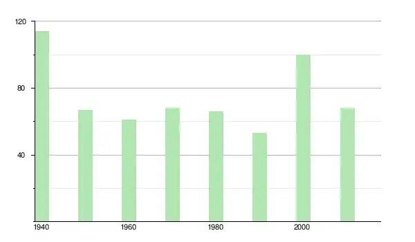 | 1950 | 67 | ▼ −41,23 % | |