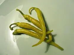 - Le piment doit être très peu ou pas du tout piquant, de forme étroite, allongée et lisse, de section ronde.