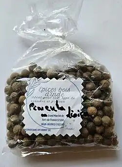 - français : Poivre de la Jamaïque, piment de la Jamaïque, quatre-épices, tout-épice, piment-giroflée, poivrier-giroflée, poivre aromatique, bois d'inde, épices bois d'Inde.