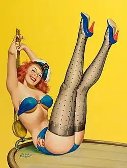 En 1956, la pin-up Hilda est créée par Duane Bryers. Contrairement aux pin-ups de l'époque, elle surprend par ses formes plantureuses et est dessinée jusque dans les années 1980[10].