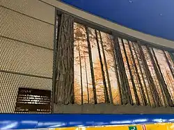 Le vestibule intérieur de la station est décoré par un mur métallique de 25 m de long sur 5 m de haut qui représente une pinède[6].