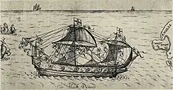 "The pinnace is perhaps the most confusing of all the early seventeenth-century types of vessels. Pinnace was more of a use than a type name, for almost any vessel could have been a pinnace or tender to a larger one. Generally speaking, pinnaces were lightly built, single-decked, square-sterned vessels suitable for exploring, trading, and light naval duties. On equal lengths, pinnaces tended to be narrower than other types. Although primarily sailing vessels, many pinnaces carried sweeps for moving in calms or around harbors."[12]