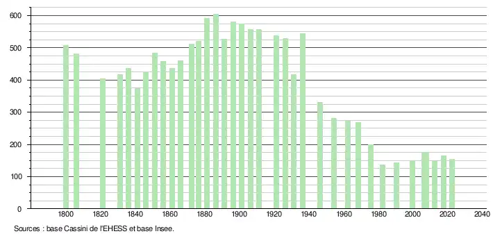 - ↑ Population municipale de référence en vigueur au 1er janvier 2025, millésimée 2022, définie dans les limites territoriales en vigueur au 1er janvier 2024, date de référence statistique : 1er janvier 2022.