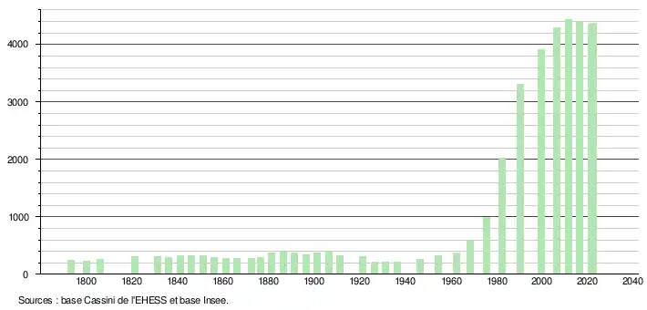 - ↑ Fiches Insee - Populations de référence de la commune pour les années 2006, 2007, 2008, 2009, 2010, 2011, 2012, 2013, 2014, 2015, 2016, 2017, 2018, 2019, 2020, 2021 et 2022.