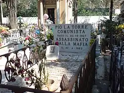 Dirigeant du Parti communiste italien, animateur de la lutte des paysans siciliens sans terre, il est député à partir de 1972. Pio La Torre fut abattu par la mafia après avoir proposé une loi introduisant un nouveau type de crime dans le système judiciaire italien - conspiration mafieuse - et la possibilité pour les tribunaux de saisir et confisquer le patrimoine des personnes appartenant à un réseau mafieux.